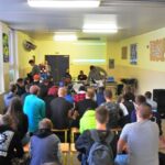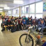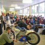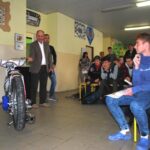 Už tretiu návštevu plochodrážnikov za posledné dva roky zažila táto škola, ktorej smerovanie je čiastočne spojené aj s motocyklami a ich technickými záležitosťami. A práve na toto sa sústredili účastníci besedy so žiakmi prvého a druhého ročníka tejto školy. Akciu už tradične moderoval predseda SC Mgr. Martin Búri. O sprostredkovanie mnohých informácií sa pre študentov pokúsili tréner Ján Daniel, pretekár Patrik Búri, či mechanik Samuel Chmola, ktorý je zároveň aj žiakom spomínanej školy. Nebyť časového obmedzenia, keďže na škole zároveň prebiehal deň otvorených dverí, beseda by sa určite natiahla na niekoľko hodín, keďže štýly jazdy, technické dáta motocykla a podobné informácie zaujali študentov.
