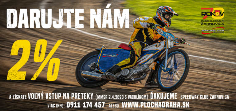 Každoročne sa medzi žiadateľov o 2% z dane radí aj Speedway Club Žarnovica, ktorý už dvanásť rokov vykonáva svoju činnosť na jedinom slovenskom plochodrážnom ovále.