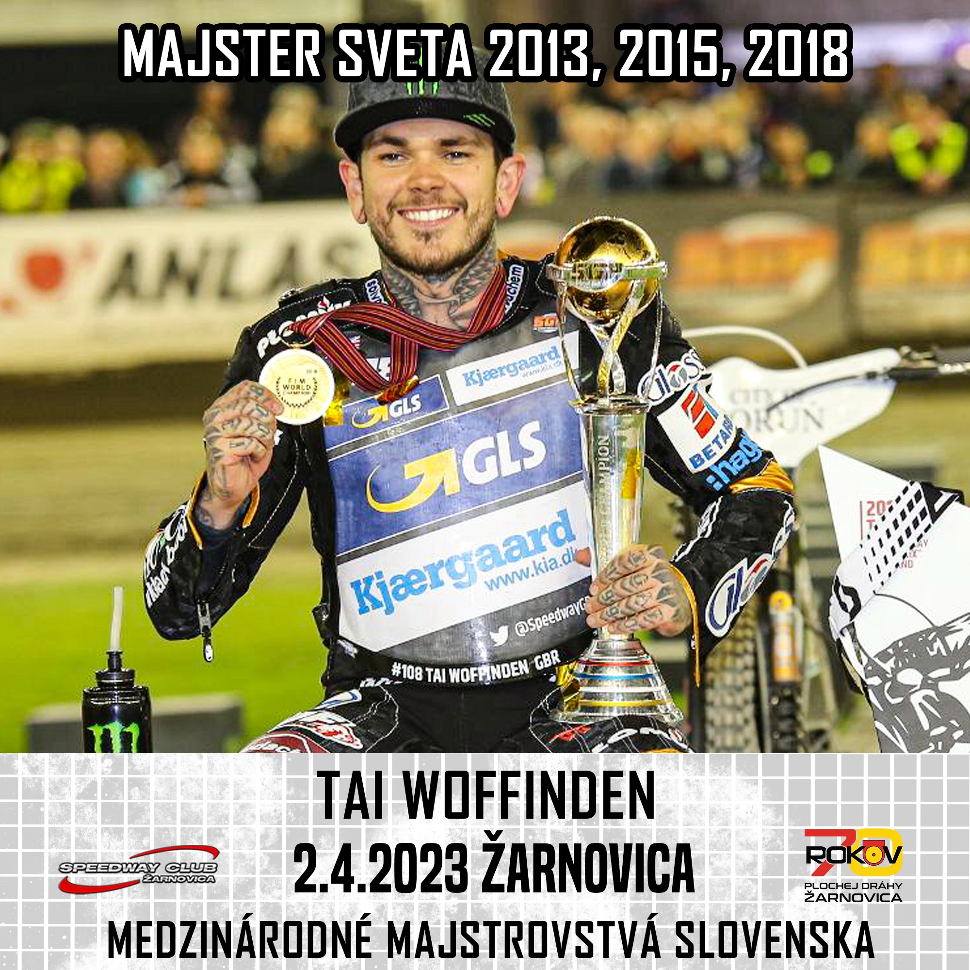 Dnes prišla perfektná správa, do štartovnej listiny pribudlo meno – Tai Woffinden! Turbulentné zmeny v plochodrážnom kalendári spôsobuje počasie. Kým v Poľsku odvolávajú jedny preteky za druhými, v Žarnovici sa zo dňa na deň vylepšujú predpovede počasia na nedeľu. Následkom toho je, že organizátor je doslova bombardovaný žiadosťami jazdcov o možnosť štartovať v Žarnovici a to aj tými najkvalitnejšími.